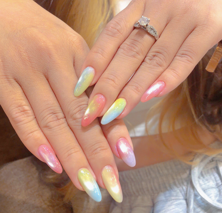 Kỹ thuật sử dụng nam châm để điều khiển các hạt kim loại trong sơn. Tạo nên những dải sáng mềm mại như dải ngân hà. Đây là mẫu Nail Art “quốc dân” luôn đứng đầu bảng xếp hạng yêu thích tại salon.