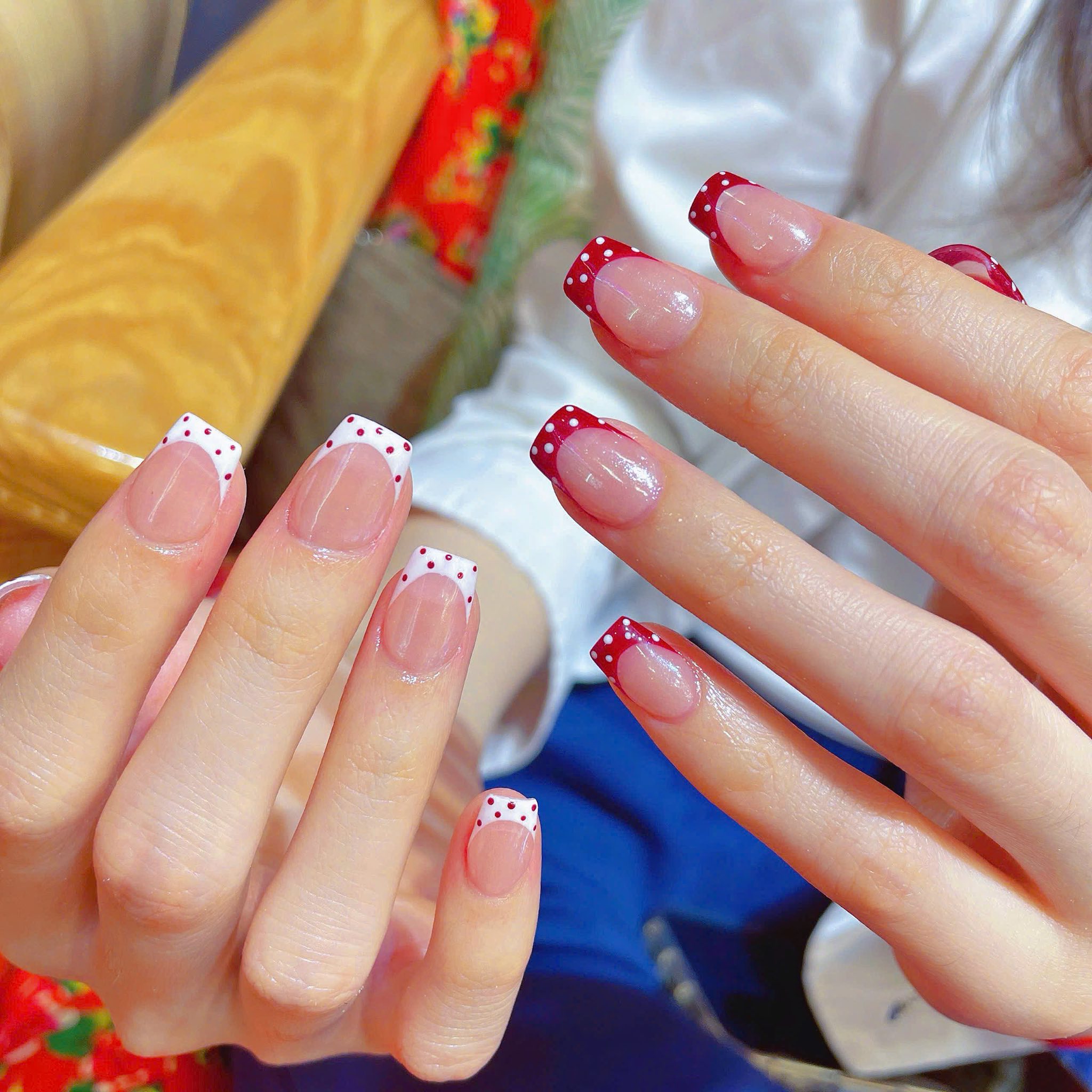 - Dễ dàng phối đồ: Bạn có thể mặc áo dài đỏ truyền thống hôm mùng 1. Diện váy hoa mùng 2 và mặc đồ jeans năng động mùng 3. Mà không bao giờ lo móng bị “vênh” màu với trang phục.
