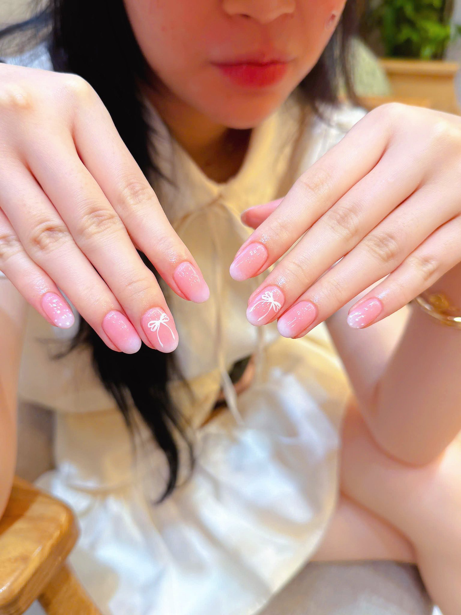 - Nhấn một móng cùng tone: Một chút nhũ mịn siêu nhỏ, charm nhỏ hoặc hiệu ứng mắt mèo nhẹ nhàng trên một ngón áp út sẽ tạo nên điểm nhấn tinh tế.