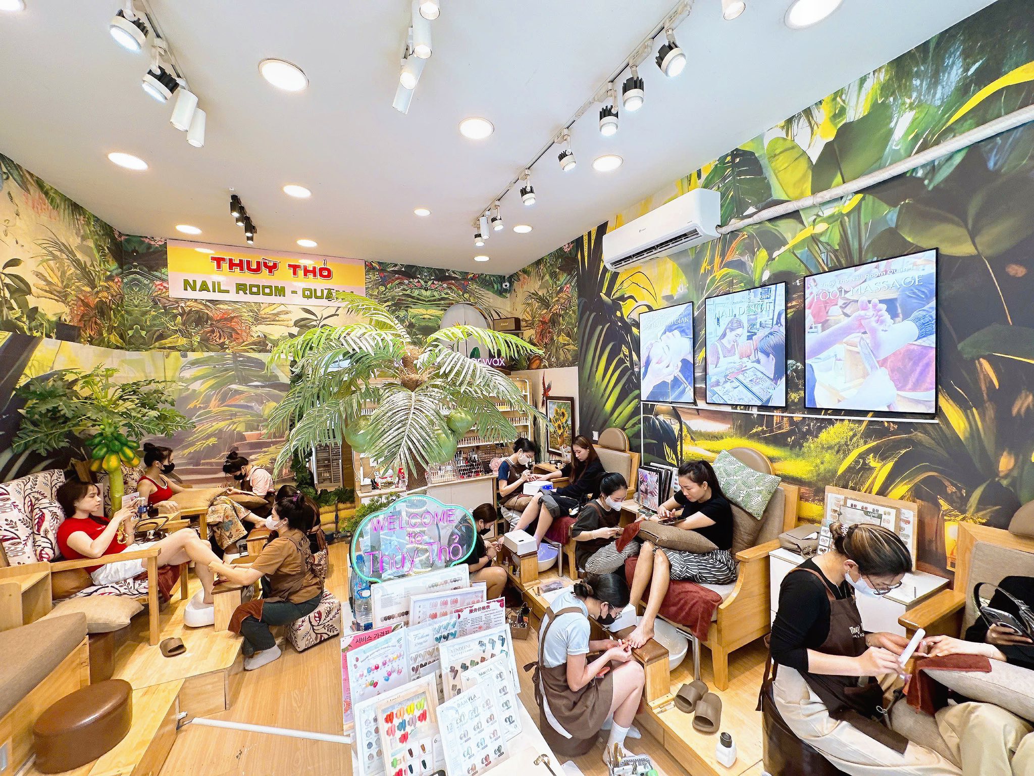 Dù làm việc xuyên Tết, nhưng không khí tại tiệm lúc nào cũng rộn ràng. Tụi mình trang trí tiệm với hoa mai, hoa đào và những phong bao lì xì đỏ thắm. Bạn ghé làm nail mà cứ ngỡ như đang ghé nhà một người bạn để chơi Tết vậy đó. Sự thoải mái, gần gũi luôn là điều mà Thùy Thỏ muốn mang lại cho mỗi khách hàng khi bước vào tiệm.