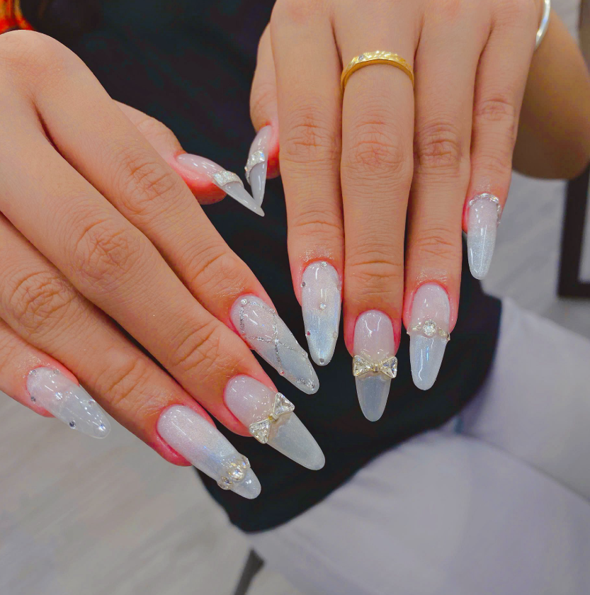 Sự linh hoạt trong việc kết hợp các tông màu khiến Ombre luôn nằm trong top “best-seller” tại tiệm mình. Năm 2026, kiểu ombre dọc hoặc ombre kết hợp mắt mèo đang là “hot trend nail đẹp” mà các nàng nên thử đó nha!